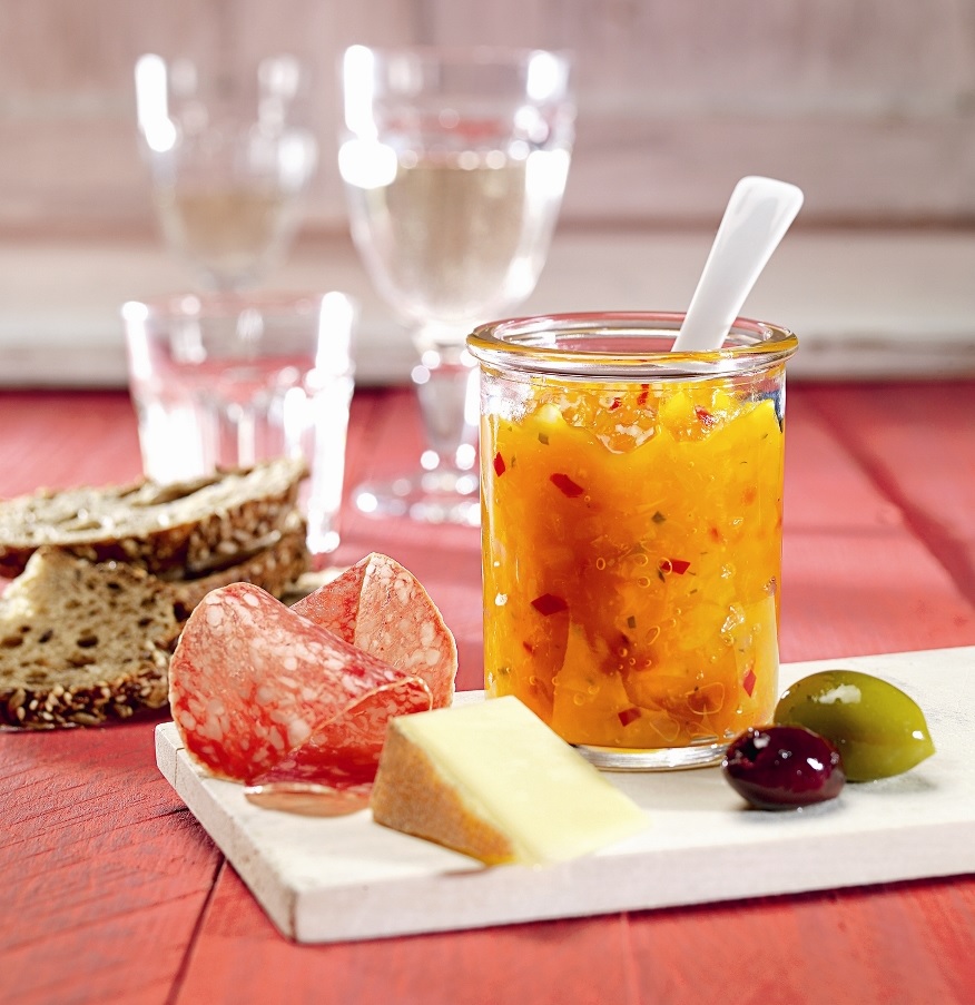 Zmes plníme do pripravených pohárov až po okraj. Uzavrieme viečkami, poháre obrátime dnom nahor a asi päť minút necháme stáť na viečku. Miesto marhúľ môžeme do paprikového čatní použiť aj iné ovocie – nektarinky alebo slivky. Množstvo čili papričiek zvolíme podľa ich ostrosti.