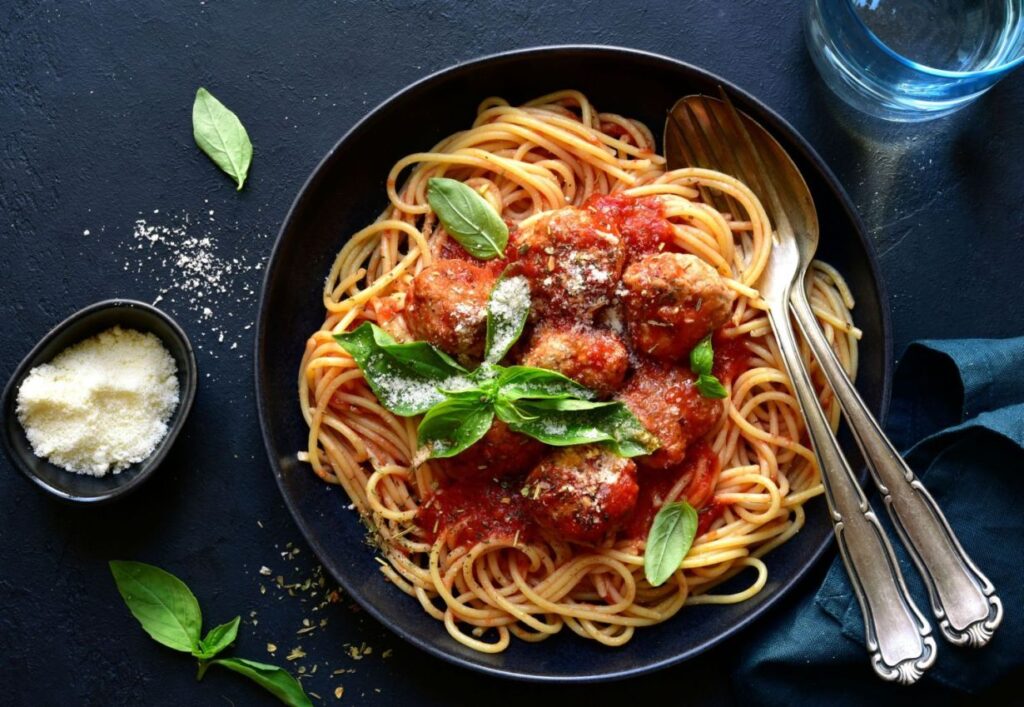 Ryžu uvaríme, necháme vychladnúť a rozmixujeme s kukuricou, múkou, olejom, jarnou cibuľkou, cesnakom, zázvorom, čili a vňaťou. Zmes dochutíme soľou a čiernym korením. Potom vytvarujeme guľôčky, ktoré vypražíme a podávame v paradajkovej omáčke s cestovinami. Na tanieri dozdobíme čerstvou bazalkou, prípadne strúhaným syrom.
